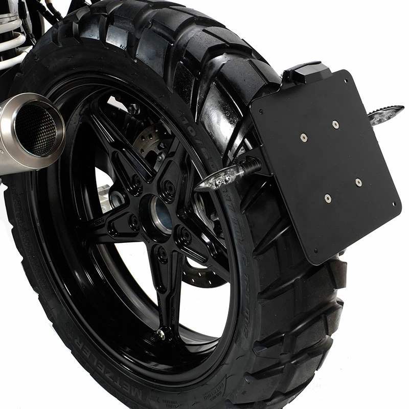 Made of steel with a matte black finish tube epoxy complete with door aluminum plate with supports for original and aftermarket turn signals ( arrows not included . ) And ‘ it provided with license plate light LED . The extension of the wiring for the lighthouse and arrows is included. number plate size : 185 x 185 mm It is fixed to the Telelever and can significantly change the font and style of the bike , to fix the original lighthouse under the seat will serve you well plate holder rear light code 1604