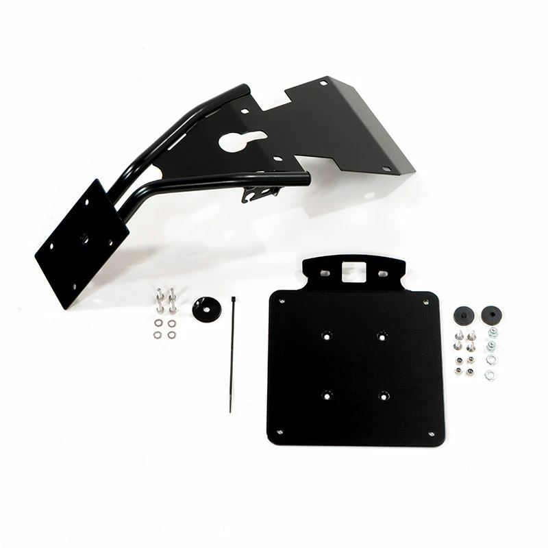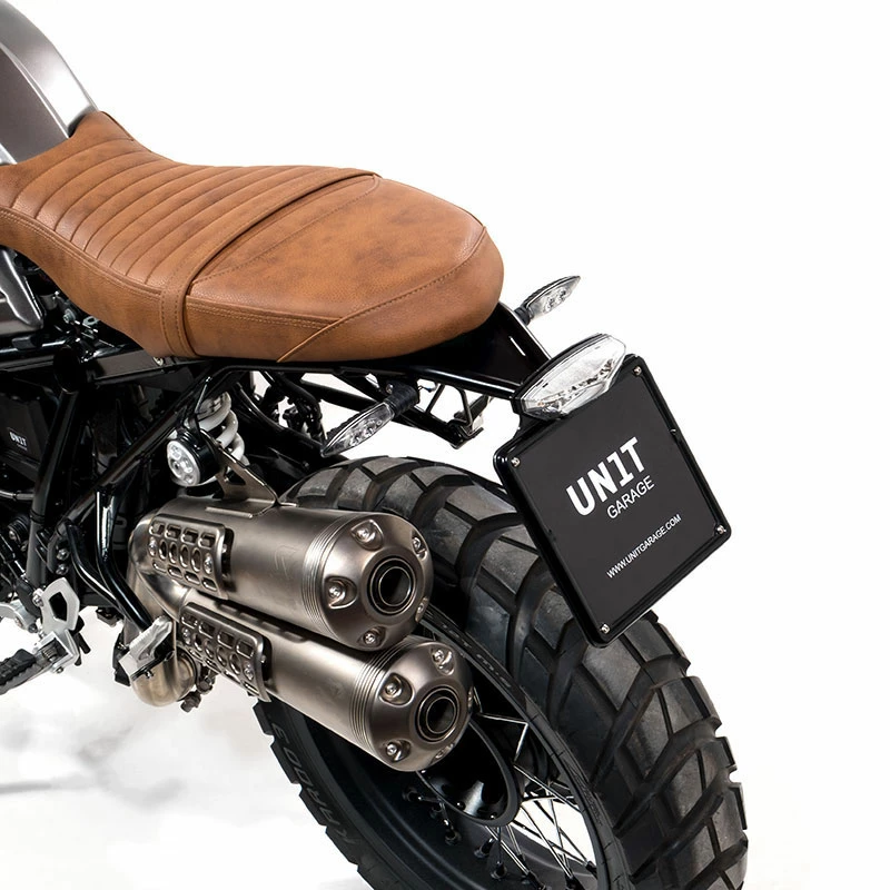 The rear plastic disturbed us, we wanted to recreate a continuity with the passenger frame in the tube: the result is great, once fitted is one with the rest of the bike. Made of epoxy powder coated steel tube complete with aluminum plate holder with accommodation ready to accommodate the original lighthouse. It fits the chassis very simply and allows you to significantly change the character and style of the bike in the rear by shortening and raising the license plate and the headlight. Complete with original arrow or aftermarket mounts (arrows not included) and everything you need for mounting, is compatible with our tow truck frames, passenger handle or rear luggage rack.