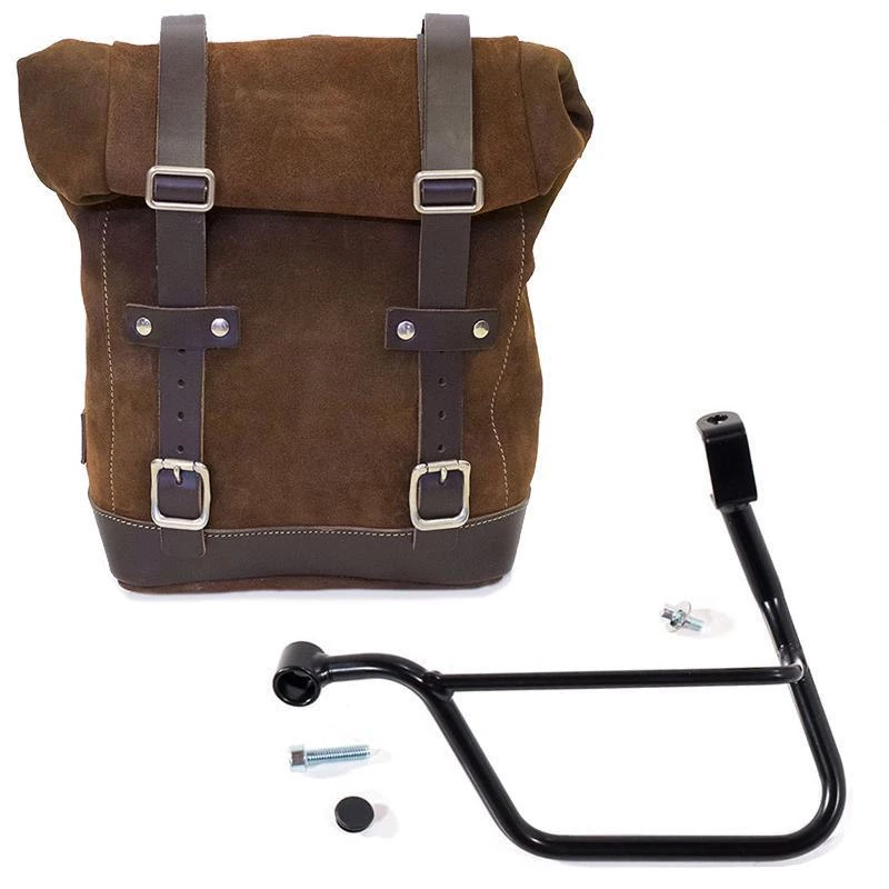 Side pannier made by hand in Italy in top quality rugged split leather treated with wax to make it waterproof.