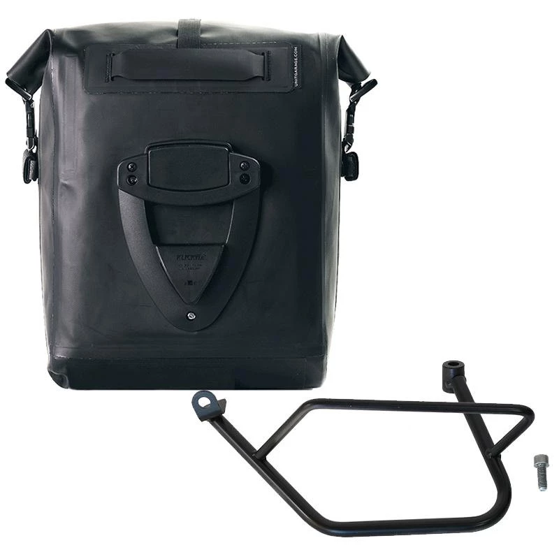 It is mounted on the left side of the bike. Specially designed to integrate seamlessly with the rest of the bike. Ready to host our quick release system, beautiful and minimal even when the bag is not mounted. It comes complete with screws and can be mounted easily on the bike in the original configuration, with or without passenger frame. All accessories are compatible with each other except when specified otherwise. It can be used comfortably with the passenger on board.
