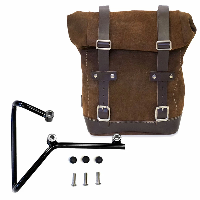 Side pannier made by hand in Italy in top quality rugged split leather treated with wax to make it waterproof.