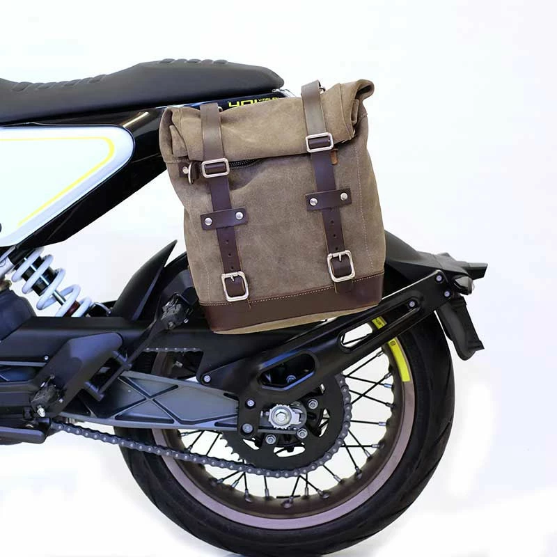 Side pannier made by hand in Italy in top quality rugged split leather treated with wax to make it waterproof.