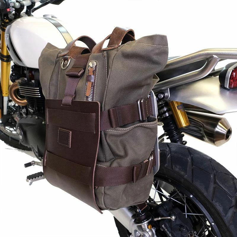 Carrying system in aluminum with adjustable leather front, Quick Release System and Left frame. Carrying system in aluminum complete with adjustable leather front. It quickly attaches to our bag holder frames with the quick release system cod.U000 already included and mounted on the back of the plate , which is equipped with a lock for locking on the frame itself. The plate creates a flat mounting surface on the side of the bike, this will allow the transport of unattached bags or other objects, such as sleeping bags, jackets etc. The front flap, with attention to the smallest details with 3 mm leather finishes, can be adjusted using the supplied sliders and can be removed very quickly from the plate. Left Frame made of steel treated with a matt black epoxy. It is mounted on the left side of the bike. Specially designed to integrate seamlessly with the rest of the bike. Ready to host our quick release system, beautiful and minimal even when the bag is not mounted. It comes complete with screws and can be mounted easily on the bike in the original configuration, with or without passenger frame. All accessories are compatible with each other except when specified otherwise. It can be used comfortably with the passenger on board. NB: Compatible with: Kawasaki Z900RS. height 25 cm, extendable in height up to 50 cm, width 25 cm extendable up to 40 cm. depth 5 cm