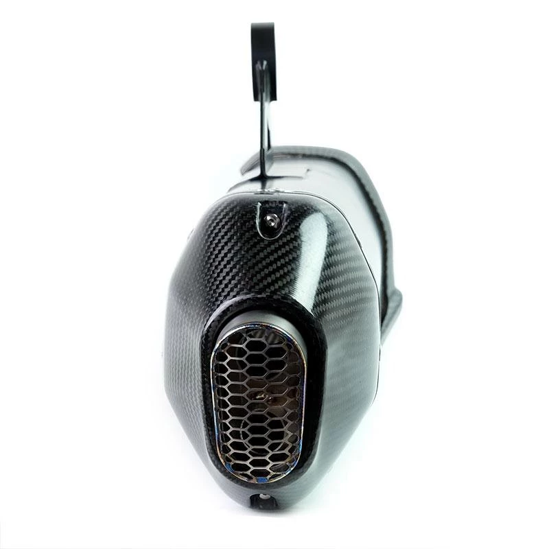 For the Gs we wanted a refined and elegant but also powerful exhaust. Performance and lightness: deep sound over the entire power curve and great weight savings. Approved silencer made of Titanium with front heat shield and Carbon terminal. The Titanium flame-breaker net and the Carbon terminal can be removed to access the DB-Killer. Mounts on the original manifolds leaving the exhaust valve and catalytic converter as standard. No need to remap the ECU. It weighs about 3 kg less than the original one. It easily mounts in a few minutes on the original support, and is compatible with all original or aftermarket cases. The sound will drive you crazy and delivery…too!