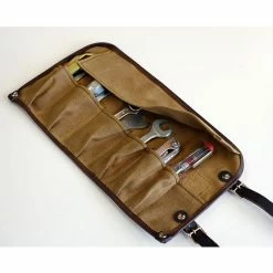 Envelope made ??gear door and sewn in cotton and leather hand. Remember the old cosmetic bag of R80 in sizes and form ; for your repairs in style. N.B .: Tools not included.
