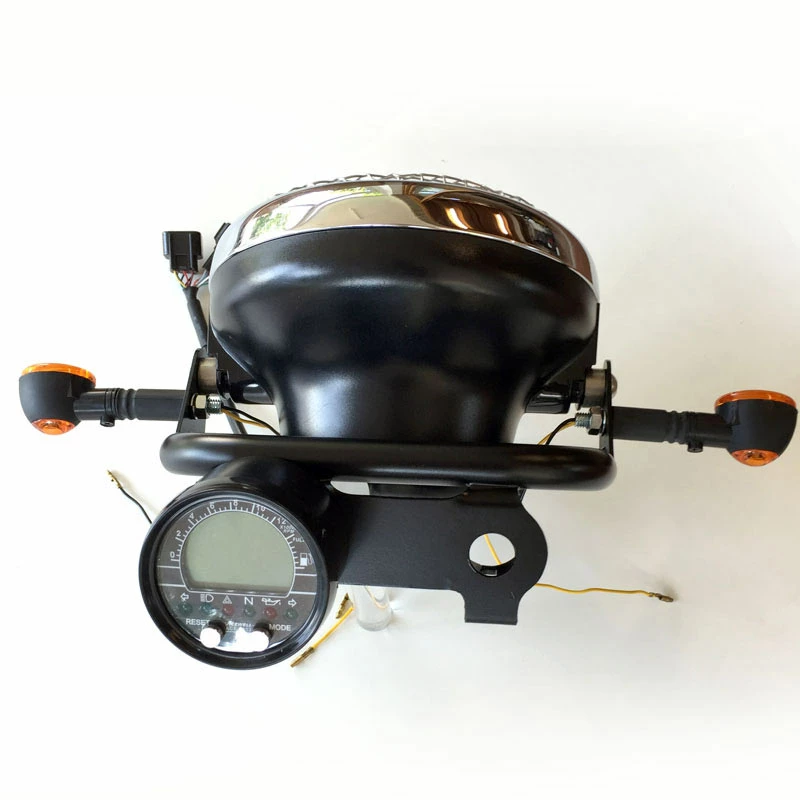 Made of treated steel with high resistance powder paint . It mounts easily and allows the housing of the BASIC headlight and fairing optional Hubert Cod . 1326 . It is designed for installation of digital instrument support ( Cod . 1513 not included ) as an alternative to the instrument panel with tachometer tachograph and original . The original ignition key is inserted in the accommodation that we have prepared very quickly . Everything is ready for installation . Distance of 203 mm headlight brackets