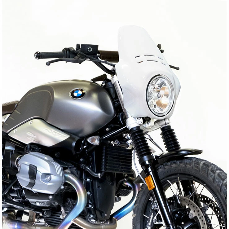Reminiscent of the look of the legendary R80 GS PD windshield and revised for your NineT. Made of ABS with, MATT Black or URBAN GS LIGHT WHITE finish. It gives good wind protection and comes complete with mounting brackets. Diameter 185mm.